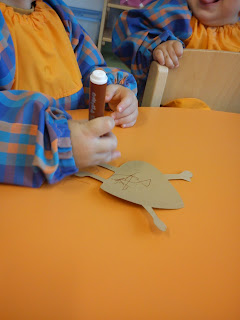 Durante a semana fomos construindo o nosso mobile de São Martinho. Ficou muito bonito com as castanhas decoradas pelos feijões da nossa sala.